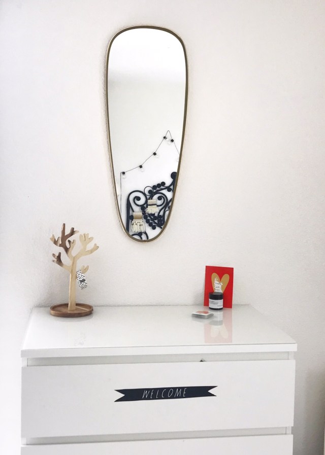 Ma fille a récupéré une partie du mobilier de sa chambre à la maison (commode, bureau, étagère IKEA, miroir rétroviseur vintage).