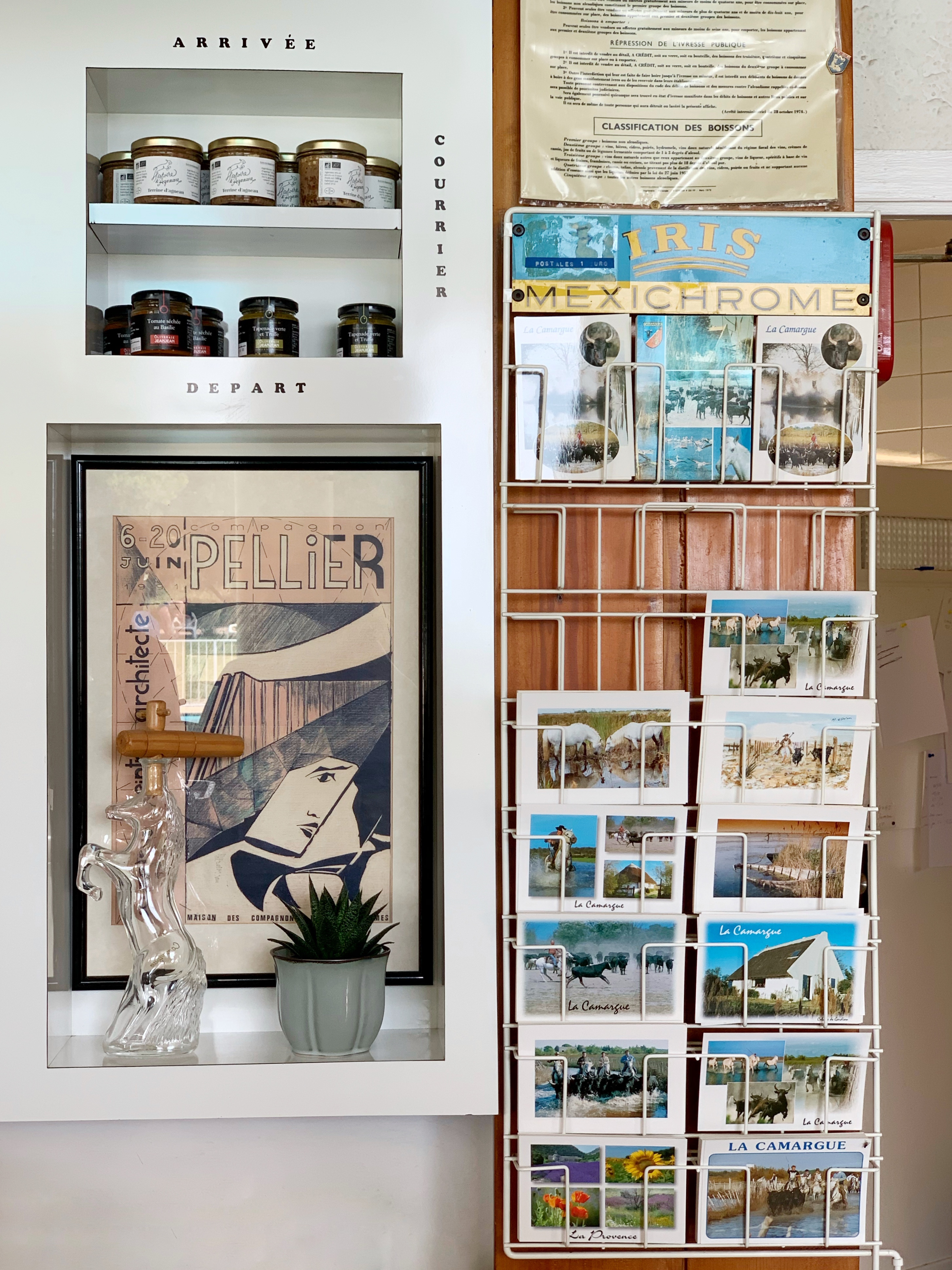Si je devais ne faire qu’un changement, je remplacerai les affiches vintage vantant le tourisme de Camargue par des affiches actuelles très graphiques pour rester dans l’esprit du lieu.